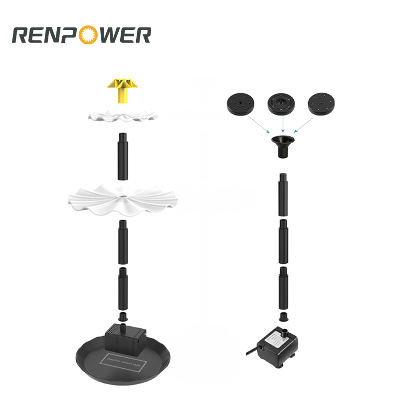 10W päikese alalisvoolu väljundpurskkaevu pumbaga linnuvanni purskkaev välistingimustes suure võimsusega päikesepurskkaev
