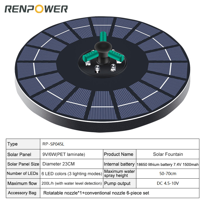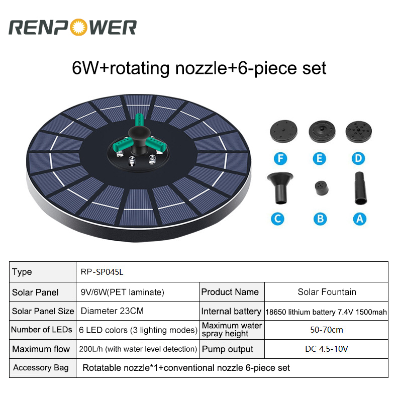 10W päikese alalisvoolu väljundpurskkaevu pumbaga linnuvanni purskkaev välistingimustes suure võimsusega päikesepurskkaev