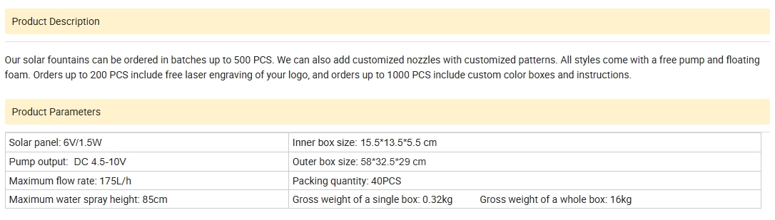10W päikese alalisvoolu väljundpurskkaevu pumbaga linnuvanni purskkaev välistingimustes suure võimsusega päikesepurskkaev